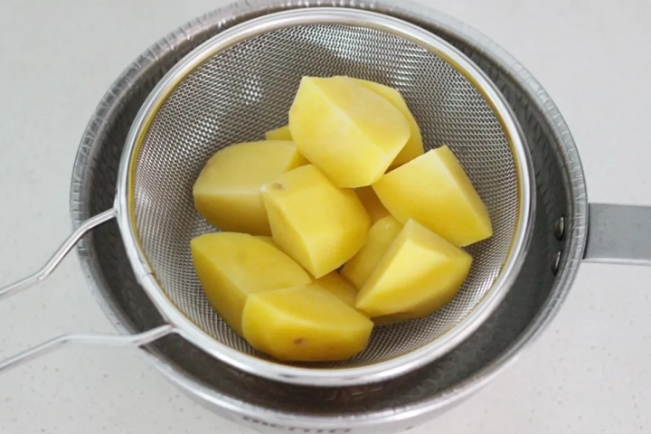 감자는 한입 크기로 썰어 끓는 물에 소금 약간 더해