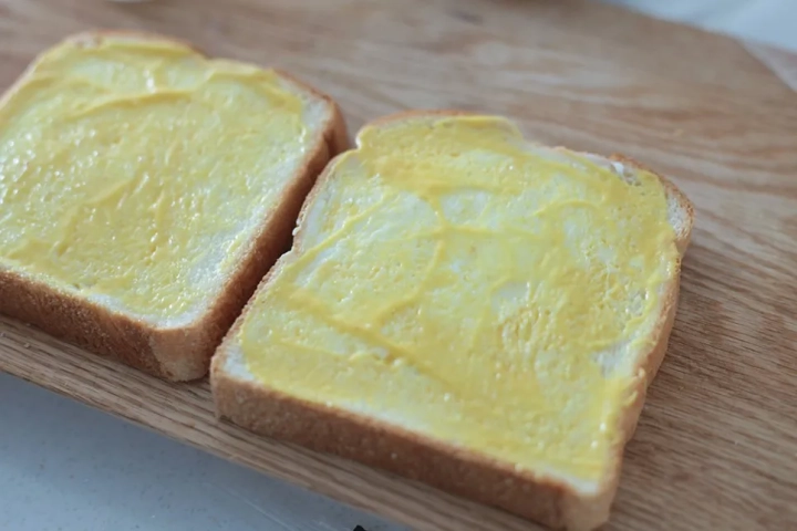 버터를 녹여 식빵에 촉촉하게 발라주고