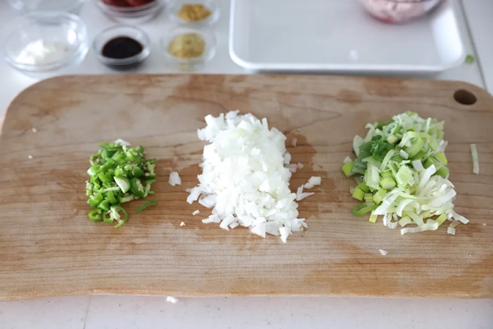 끓는 물에 30초 정도 데쳐주고 물기를 제거해주세요.