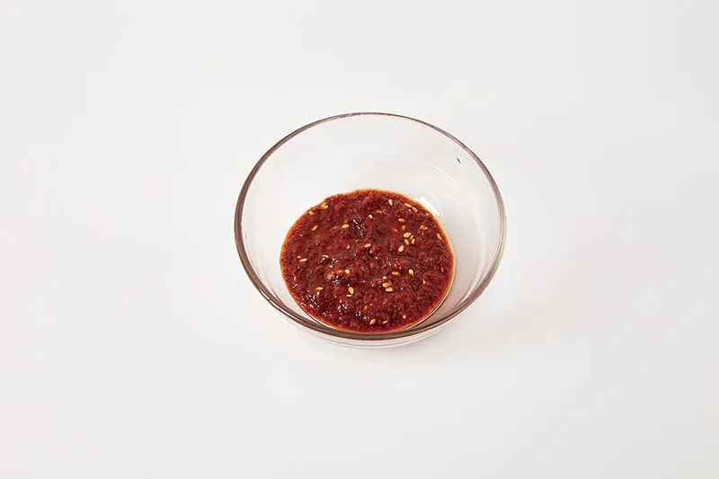 고춧가루 1큰술, 다진마늘 1/3큰술, 참기름 약간, 통깨