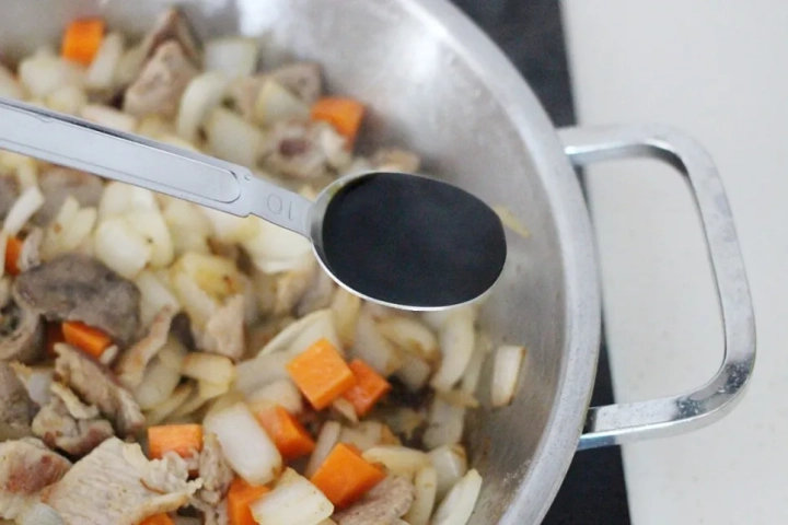 간장 1큰술을 살짝 태우듯 섞어주세요.