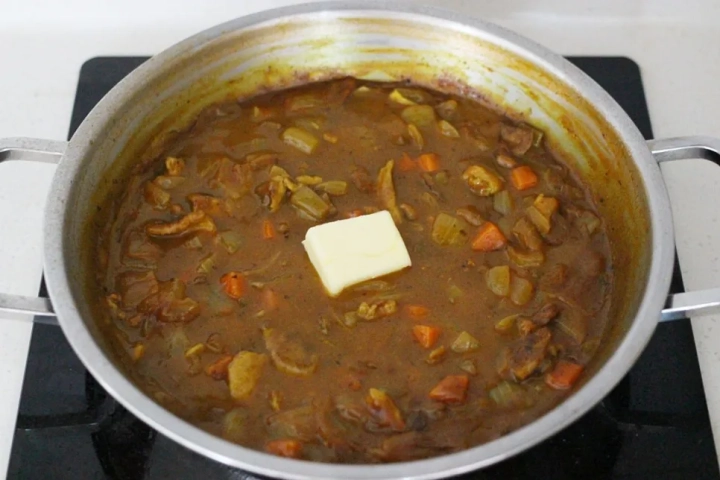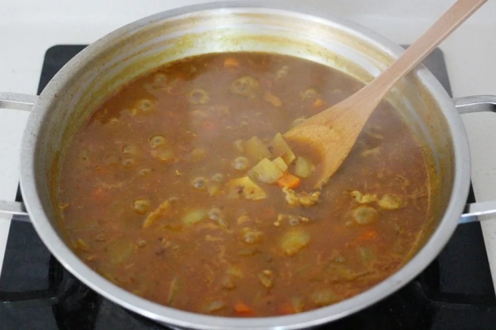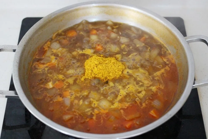 국물이 어느 정도 졸아들면 카레가루를 넣고