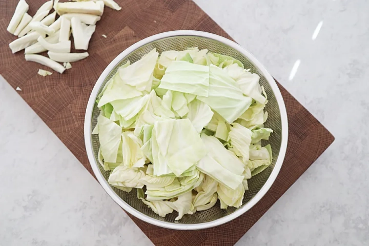 그릇에 양배추와 쪽파를 담고