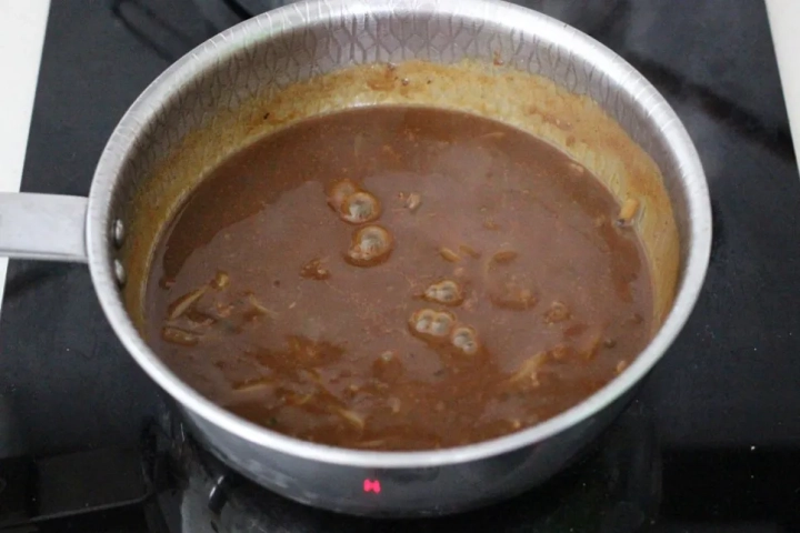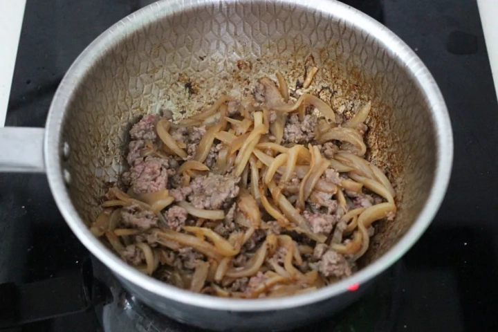 고기가 거의 익으면 물이나 멸치육수를 2컵 부어주고