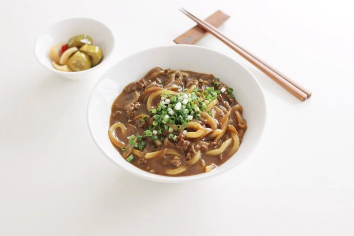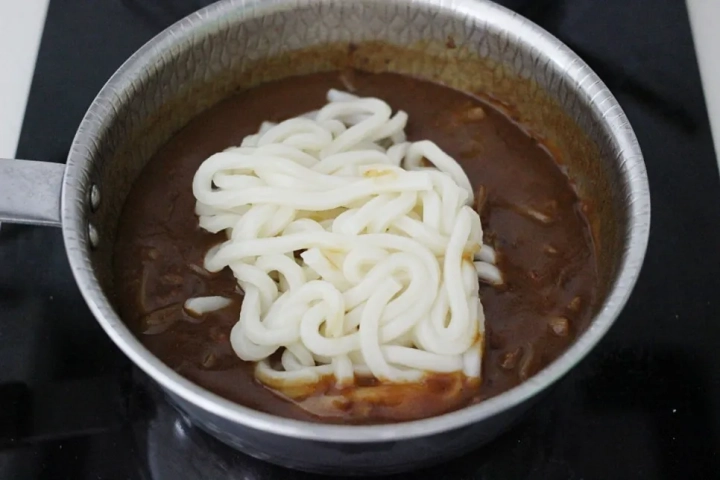 우동면은 카레소스 가득 머금어 탱글탱글 맛있고