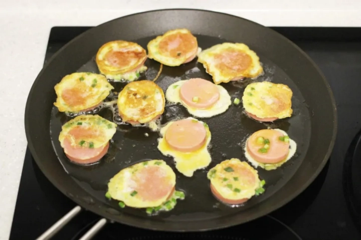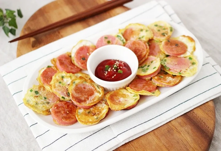 분홍소시지에 부침가루 살짝 묻혀 달걀물 입혀도 좋아요.