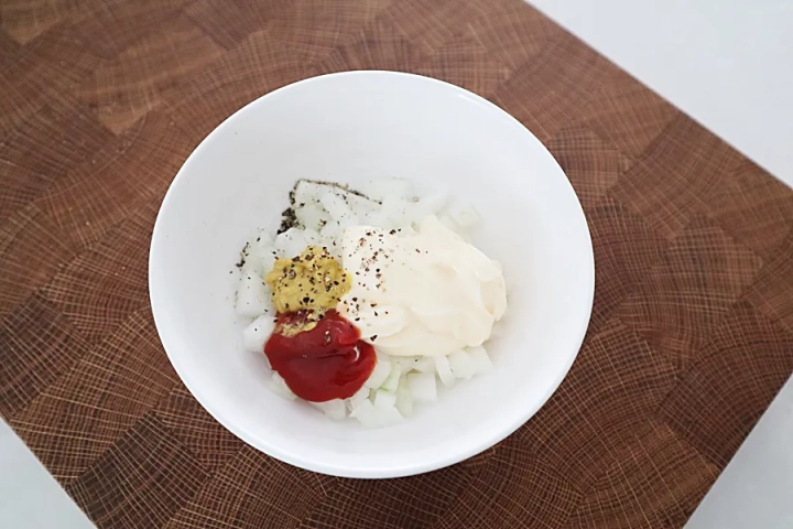 [양념재료]: 마요네즈 2큰술, 머스타드 1/2큰술,