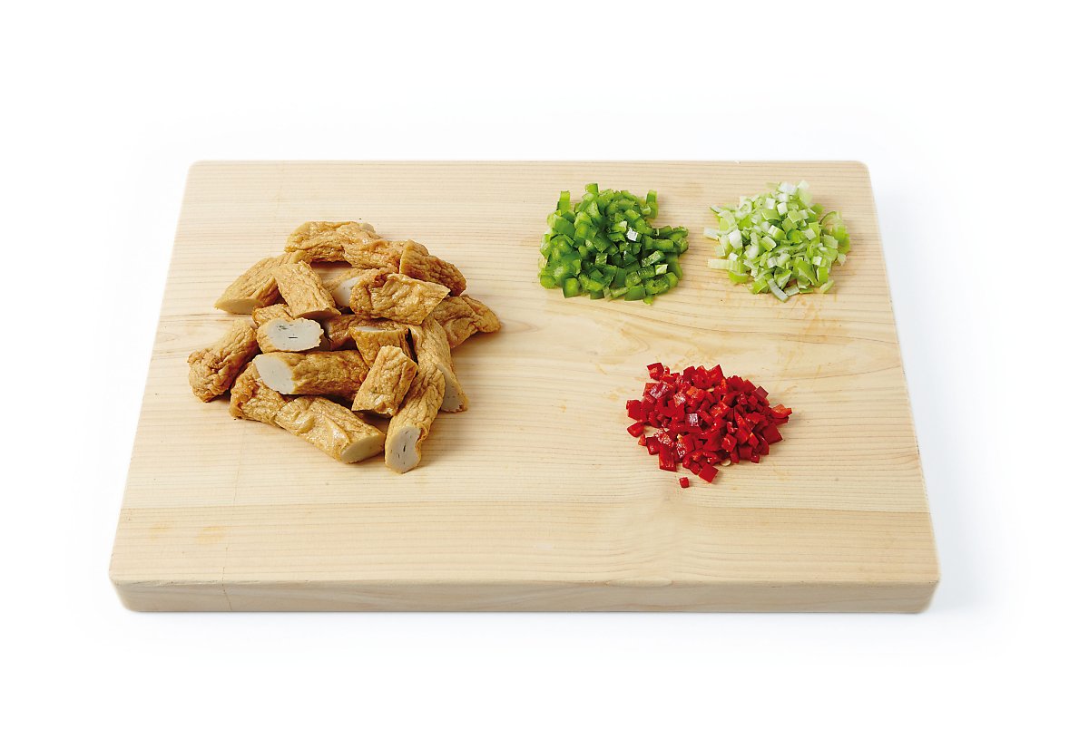 어묵은 한입크기로 썰고 대파와 피망은 다져주세요.