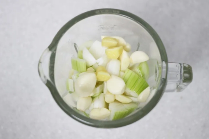 재료가 잠길만큼 물을 더해 곱게 갈아주세요.
