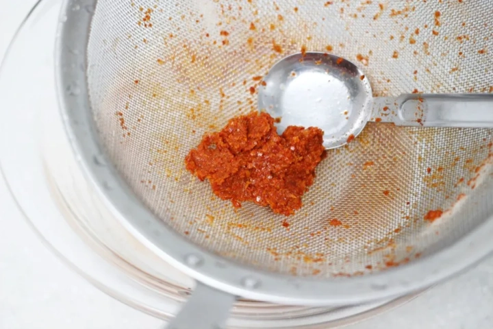 국물을 걸러내면 고춧가루도 면보나 체에 걸러