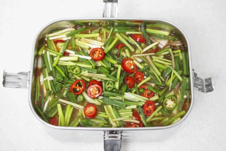 배, 양파, 마늘, 생강을 담고