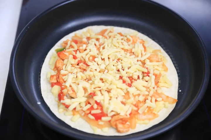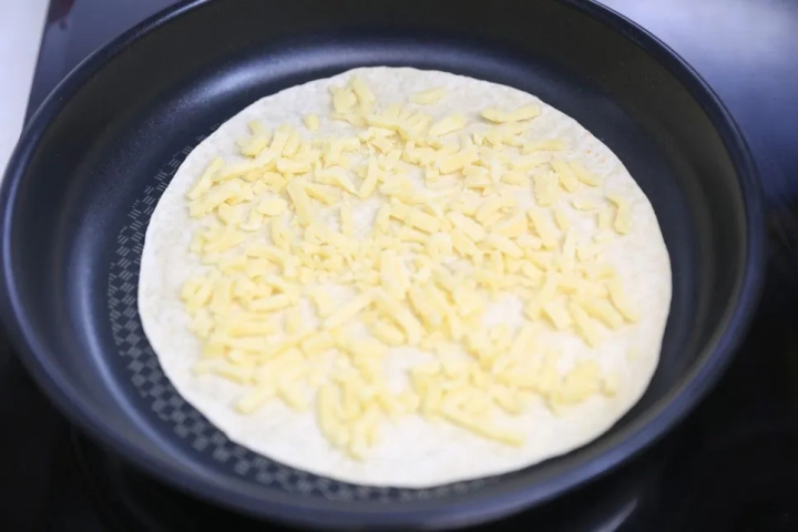달군 팬에 또띠아 한장 올려주고