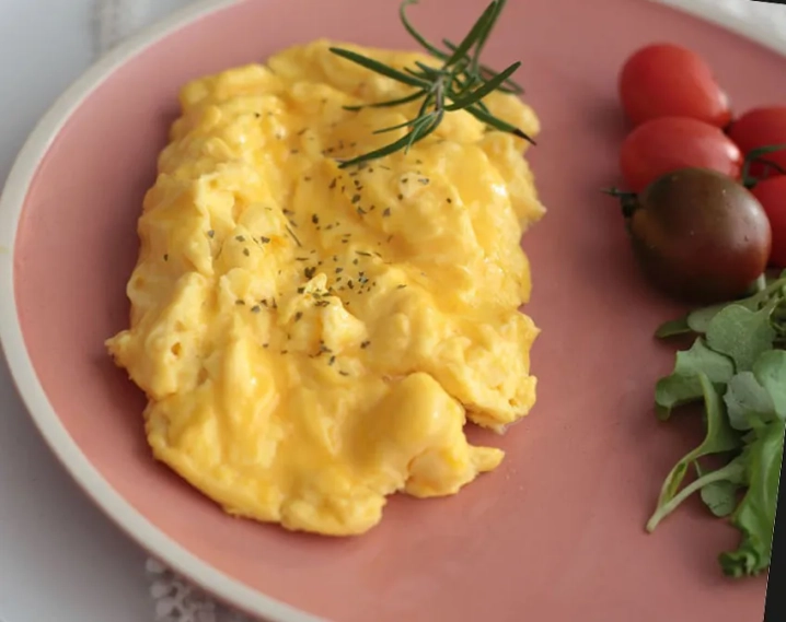 [재료]: 계란 4개, 우유 100ml, 버터 15g, 소금 1/3큰술, 설탕 1/3큰술