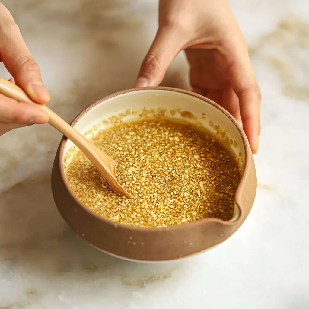 소스재료들을 골고루 섞어 겨자소스를 만들어주세요.