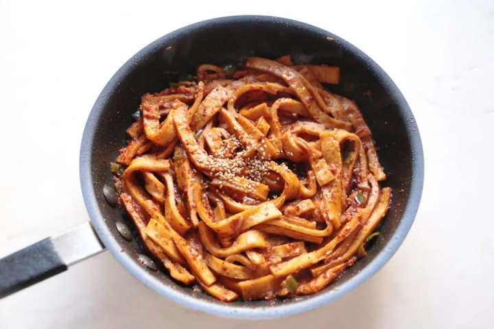 마늘 향이 올라오면 어묵을 볶아주세요.