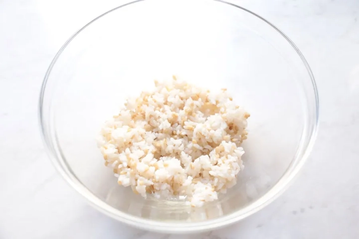 밥에 참기름을 둘러주고 소금, 통깨를 넣어 양념을 해주세요.