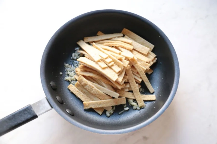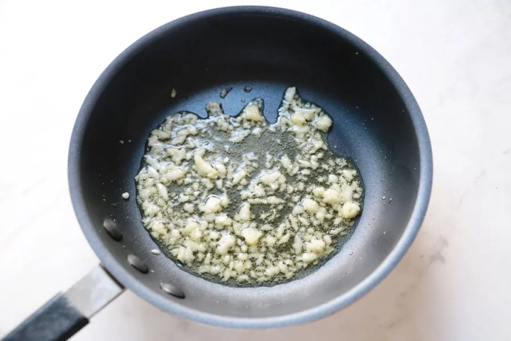 달군 팬에 기름을 두르고 다진마늘을 볶아주세요.