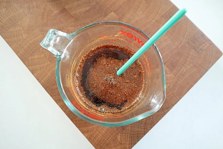 [소스재료]: 물 250ml, 흑설탕 6.5큰술, 간장 3큰술, 계피가루 1/2큰술, 소금 약간