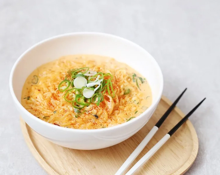 [재료]: 매운맛라면 1봉지, 우유 1.5종이컵,