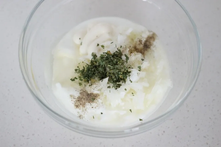 [소스재료]: 플레인요거트 4큰술, 마요네즈 1.5큰술,