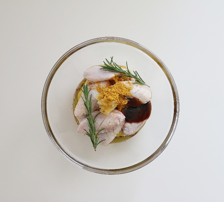닭날개에 칼집을 넣고 소스재료에 20분간 재워주세요.