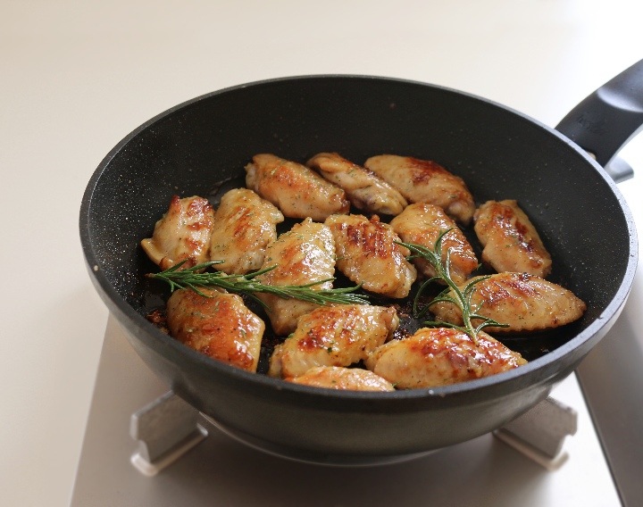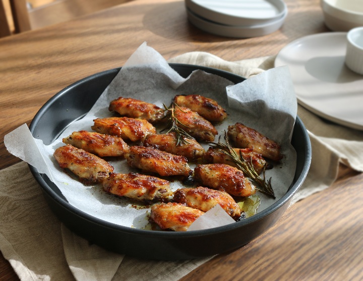 닭날개의 표면이 노릇하게 색이 나도록 앞뒤로 구워주세요.