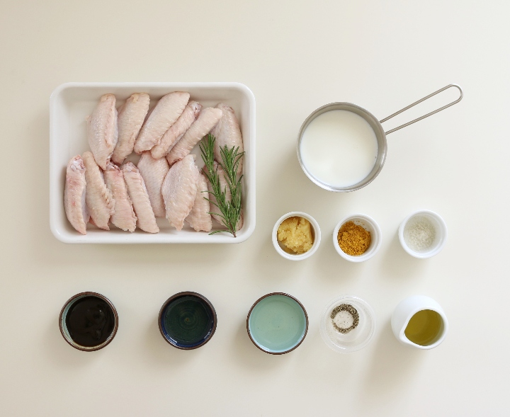 [재료]: 닭날개 500g, 우유 1/2종이컵,
