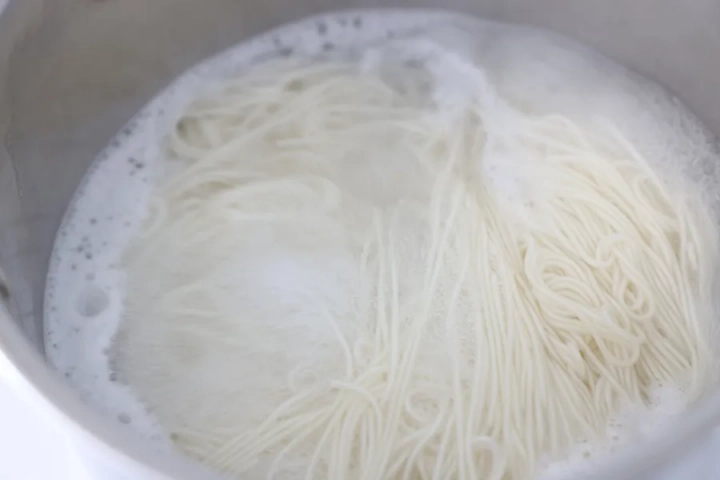 흐르는 물에 헹궈준 후 체에 받쳐 물기를 제거해주세요.