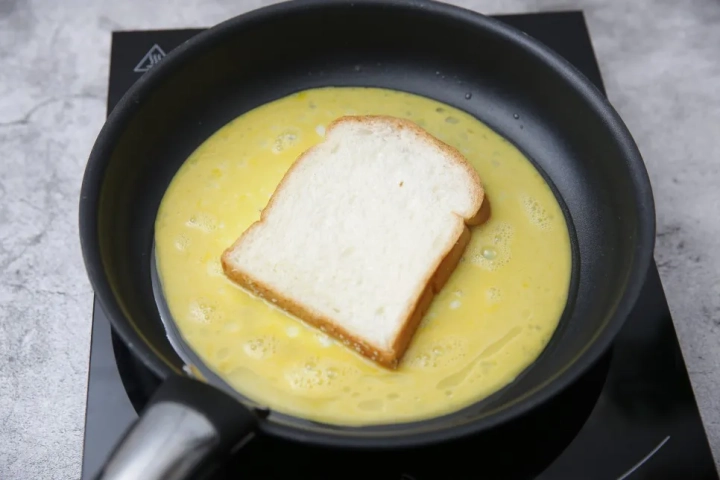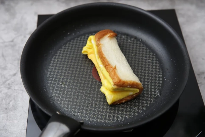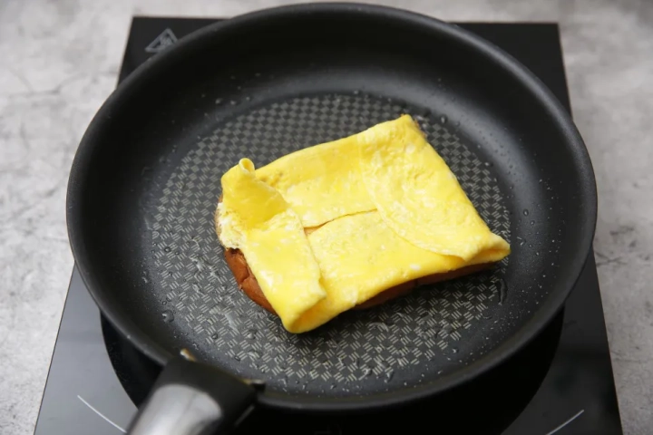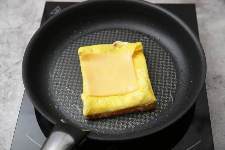 식빵 사이즈에 맞게 달걀을 올려 접어주세요.