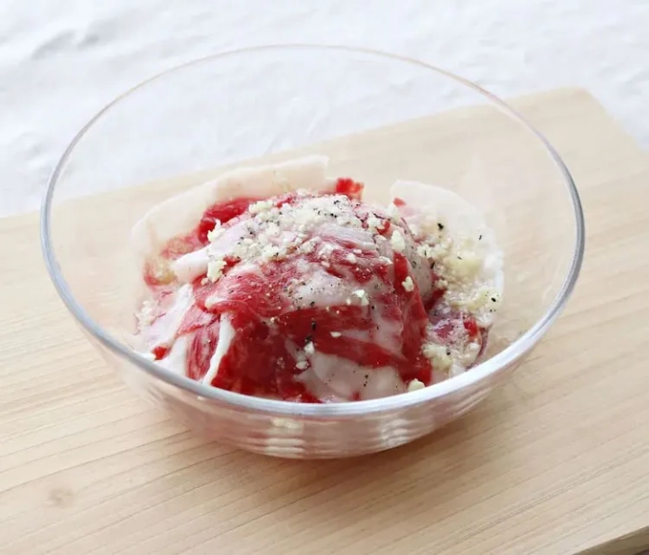 [밑간재료]: 다진마늘 1큰술, 맛술 1/2큰술, 후추 약간