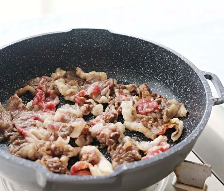중불로 달군 팬에 차돌박이를 바싹 볶아주세요.