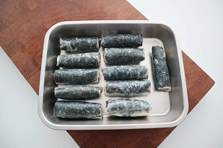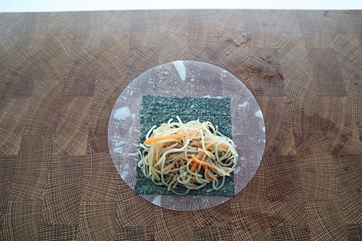 [재료]: 라이스페이퍼, 김밥용김, 당면 100g, 당근 약간