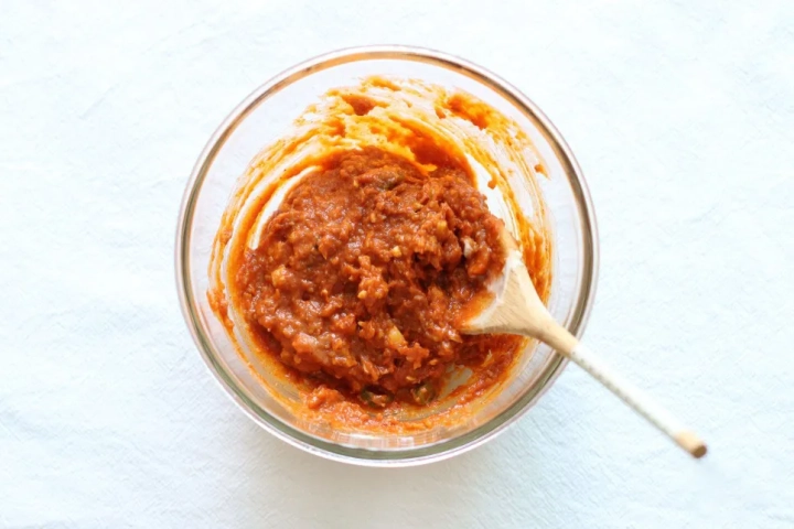 [재료]: 된장 2큰술, 설탕 1큰술, 고춧가루 1큰술,