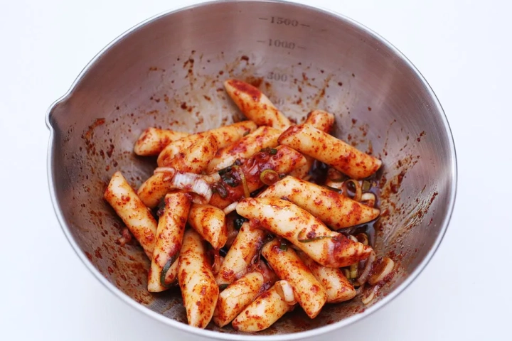 떡에 양념이 골고루 입혀지면 고춧가루를 더해