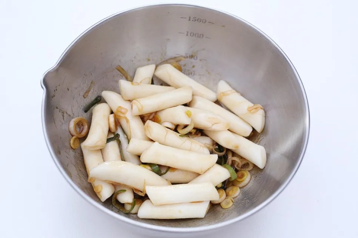 [재료]: 떡볶이떡 300g, 다진 대파, 식용유 3큰술