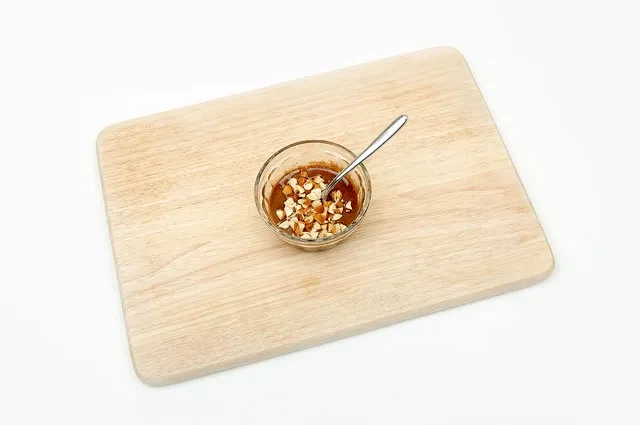 잘게 부순 견과류에 꿀, 설탕, 계피가루를