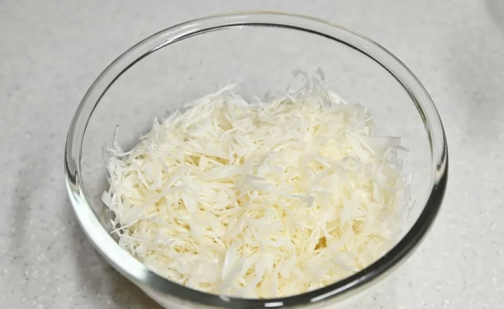 양배추도 채를 썰고 소금을 더해 절여주세요.