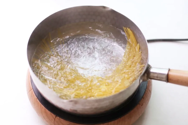 냄비에 소금 약간을 더해 물을 팔팔 끓여주고
