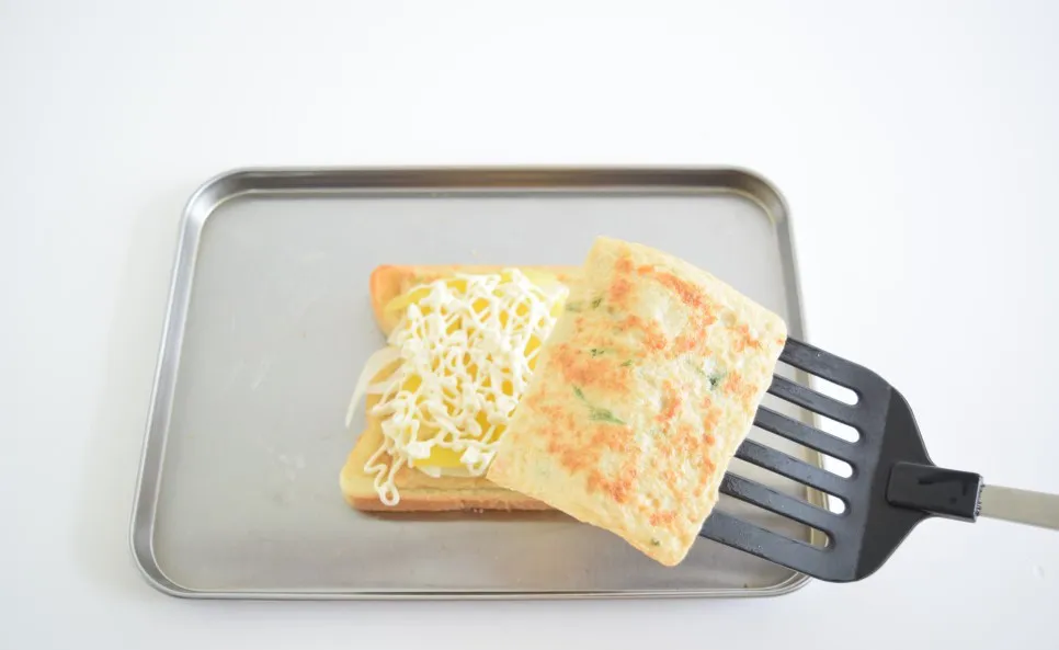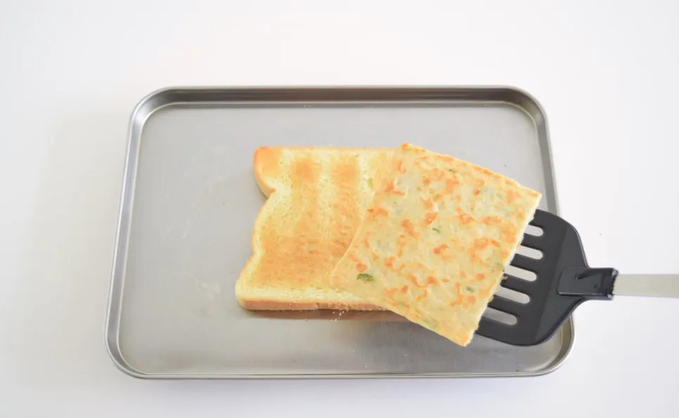 식빵 위에 구운 어묵을 올려주세요.