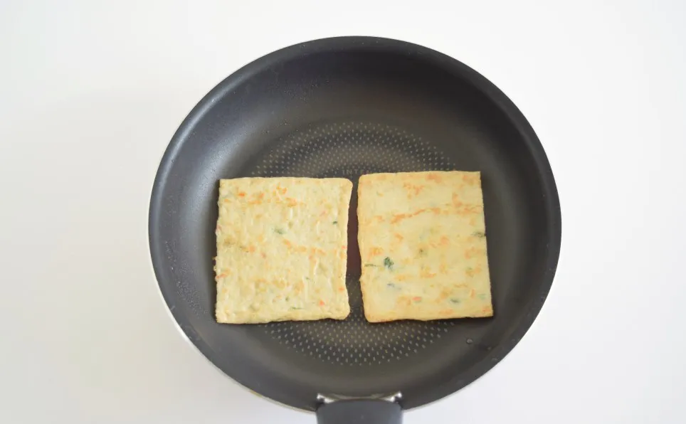 마른 후라이팬에 반으로 자른 어묵을 노릇노릇 구워주세요.