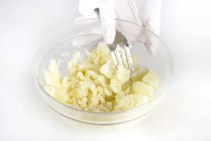 삶은 감자는 설탕, 소금을 넣고 골고루 섞어주면서 으깨주세요.