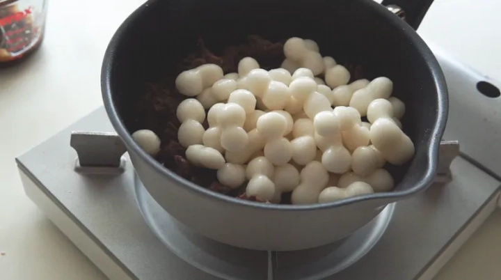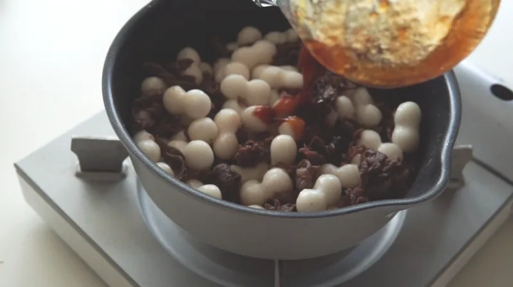 1분 정도 볶다가 양념장을 넣고 물 150ml를 부어주세요.