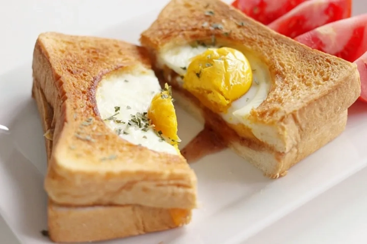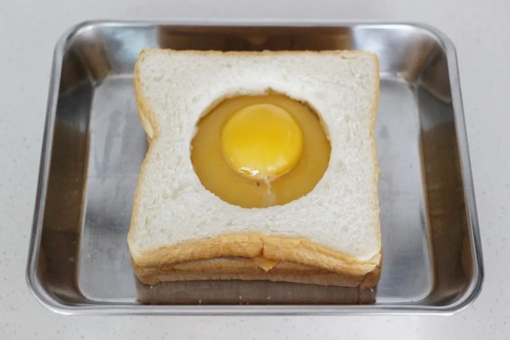 구멍 뚫린 식빵에 달걀이 쏘옥 들어간