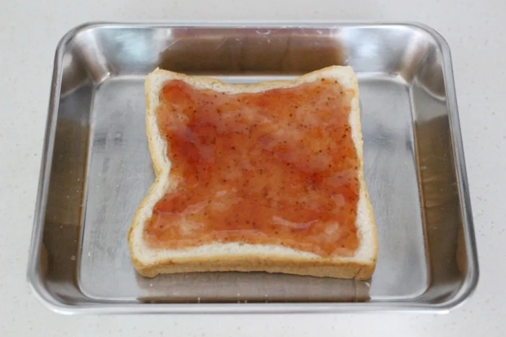 식빵 한장에 딸기잼을 골고루 펴발라주세요.