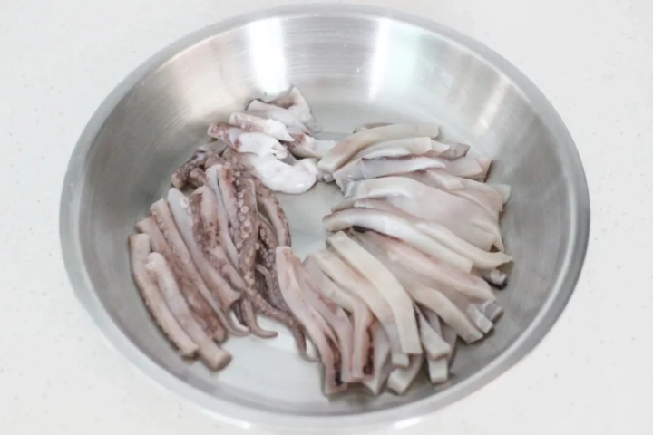 오징어는 깨끗하게 손질하고 적당한 크기로 썰어주세요.