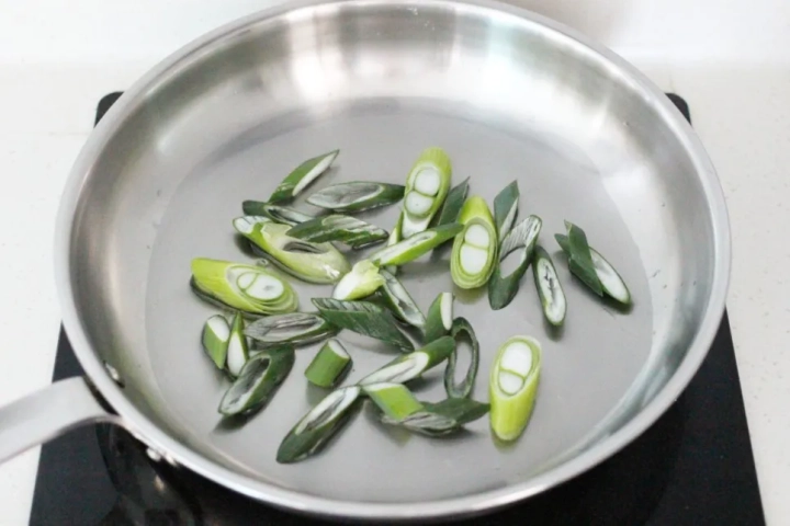 달군 팬에 기름을 둘러 대파를 볶아주세요.