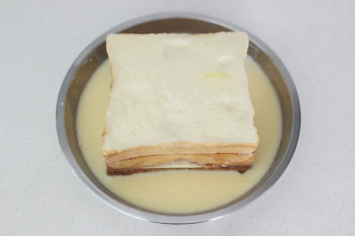식빵 모든 면에 계란물을 골고루 충분히 입혀주세요.