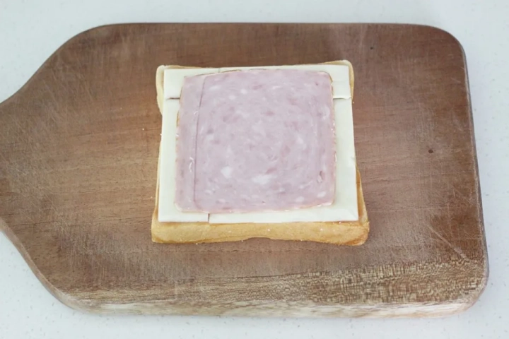 [재료]: 식빵 3장, 슬라이스햄 2장, 슬라이스치즈 3장,