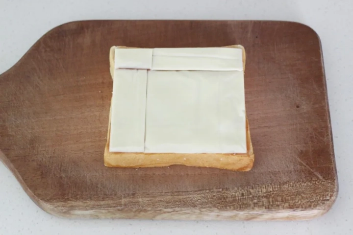 딸기잼 위에 치즈를 크기에 맞게 올려주세요.