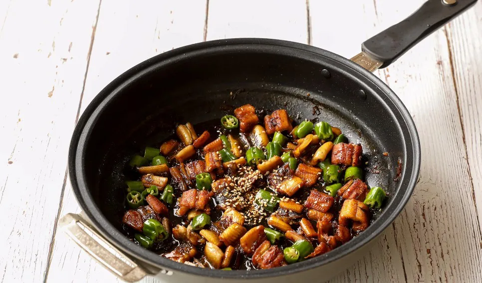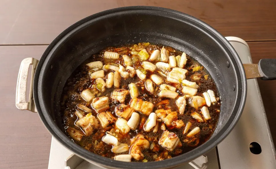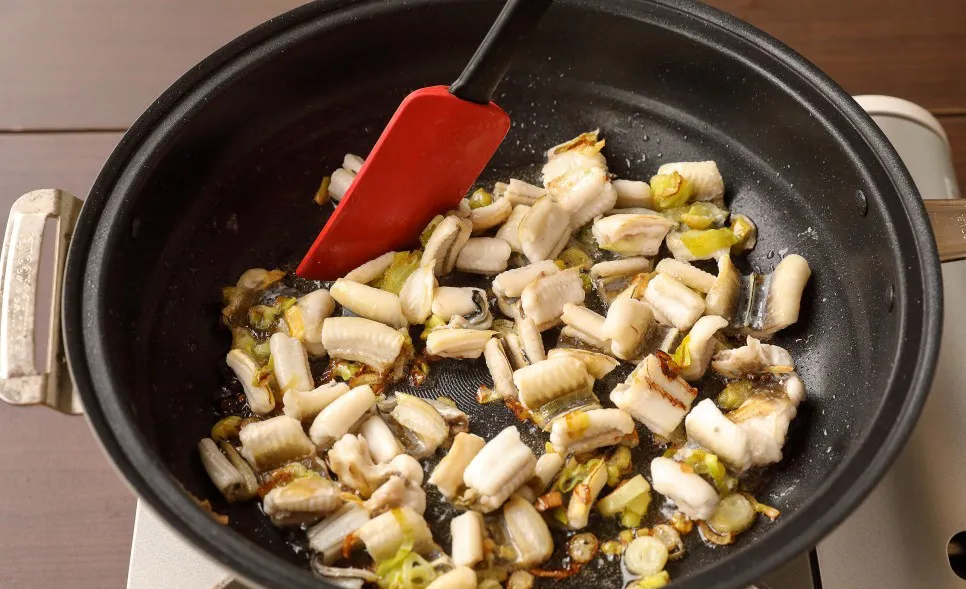 앞뒤로 노릇하게 구워 탄력이 생기면 볶아주세요.